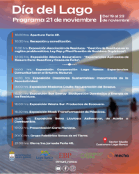 El programa arranca con Actividades Educativas (19 y 20 de noviembre), y continúa con la Feria 4R los días 21 y 22 de noviembre en el Sector Muelle Costanera Lago Ranco. Este espacio incluirá un seminarios con exposiciones orientadas al manejo de residuos, Ley REP, experiencias de Basura Cero, y la importancia de la educación ambiental, entre otros.